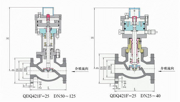 天然氣氣動緊急切斷閥外形結(jié)構(gòu)圖: