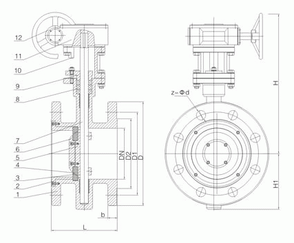 3、密封副間三偏心結(jié)構(gòu)關(guān)閉時(shí)具有越關(guān)越緊的功能,密封更加可靠,達(dá)到不泄漏,并且具有雙向密封功能。