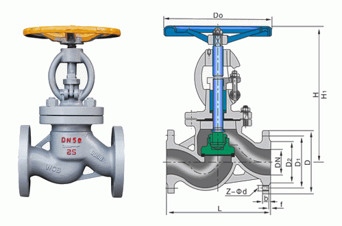 明桿氨用截止閥外形結(jié)構(gòu)圖: