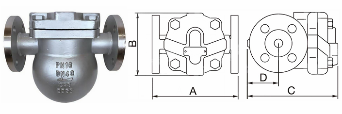 不銹鋼杠桿浮球式疏水閥外形結(jié)構(gòu)圖: