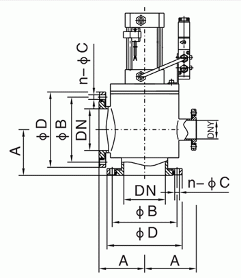GDQ-J-A常閉型氣動(dòng)高真空擋板閥外形結(jié)構(gòu)圖:
