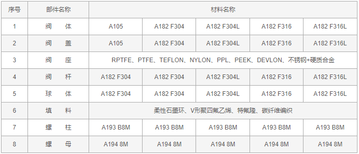 鍛鋼三通球閥零件材料: