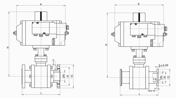 氣動高真空(壓力)球閥外形結(jié)構(gòu)圖: