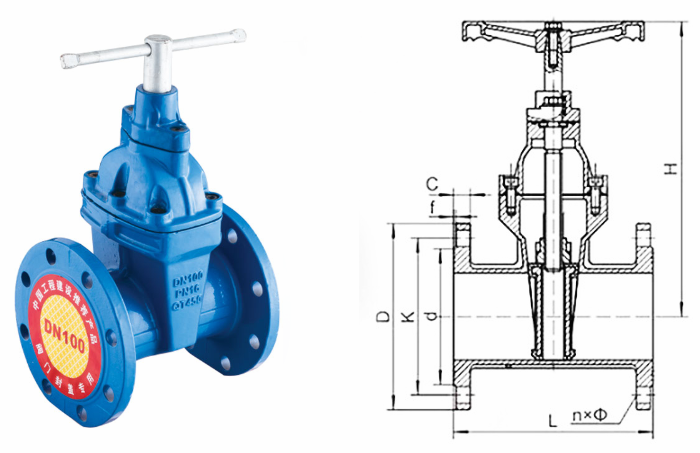 1、安裝方便:安裝后拿附件扳手,套在閥門頂部鍵槽內(nèi)打開(kāi)(或關(guān)閉)閥門的閘板,順時(shí)針關(guān),逆時(shí)針開(kāi)。