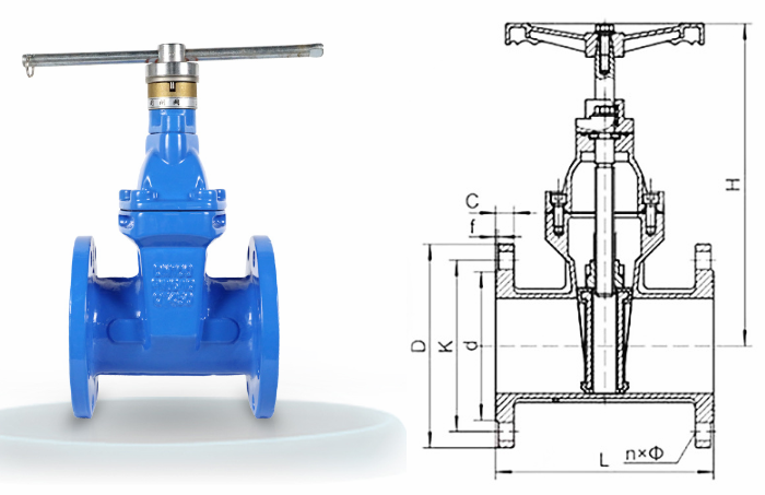 1、安裝方便:安裝后拿附件扳手,套在閥門頂部鍵槽內(nèi)打開(kāi)(或關(guān)閉)閥門的閘板,順時(shí)針關(guān),逆時(shí)針開(kāi)。