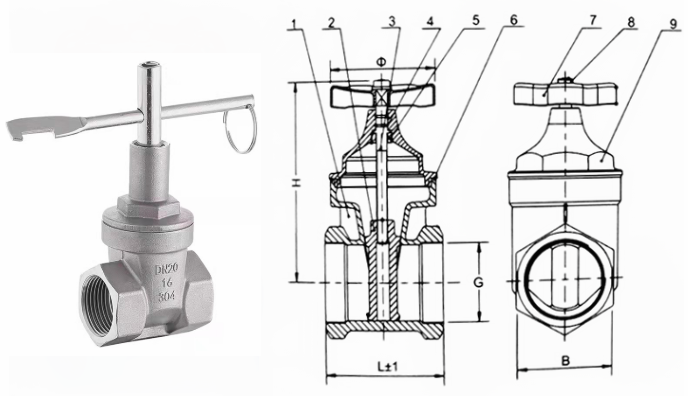不銹鋼絲口帶鎖閘閥外形結(jié)構(gòu)圖: