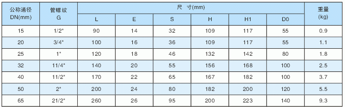 絲扣鎖閉調(diào)節(jié)閥外形連接尺寸及重量: