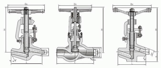 美標(biāo)高壓焊接截止閥外形結(jié)構(gòu)圖: