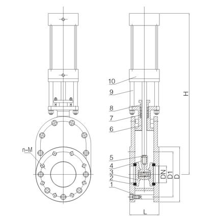 氣動陶瓷耐磨出料閥外形結(jié)構(gòu)圖: