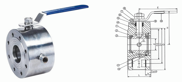 夾套保溫對夾式球閥外形結(jié)構(gòu)圖:
