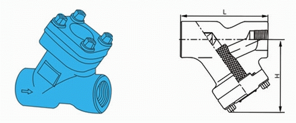 鍛鋼螺紋Y型過濾器外形結(jié)構(gòu)圖: