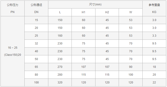 CS49H圓盤式蒸汽疏水閥外形尺寸表: