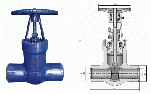 電站焊接閘閥外形結(jié)構(gòu)圖: