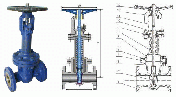 德標(biāo)波紋管閘閥外形結(jié)構(gòu)圖: