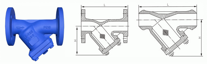法蘭德標(biāo)Y型過濾器外形結(jié)構(gòu)圖: