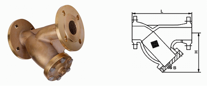 青銅Y型過濾器外形結(jié)構(gòu)圖: