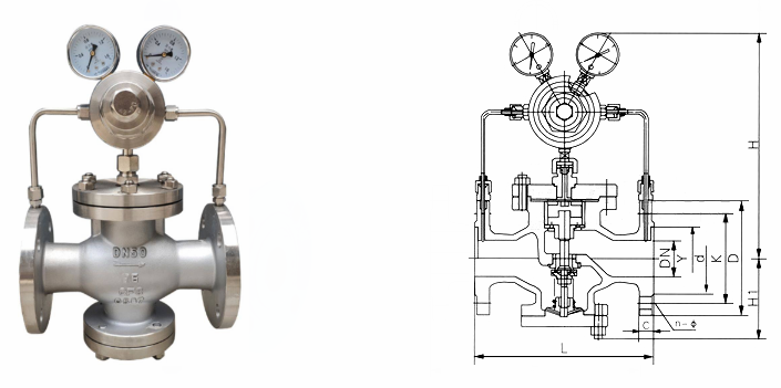 不銹鋼氣體減壓閥外形結(jié)構(gòu)圖: