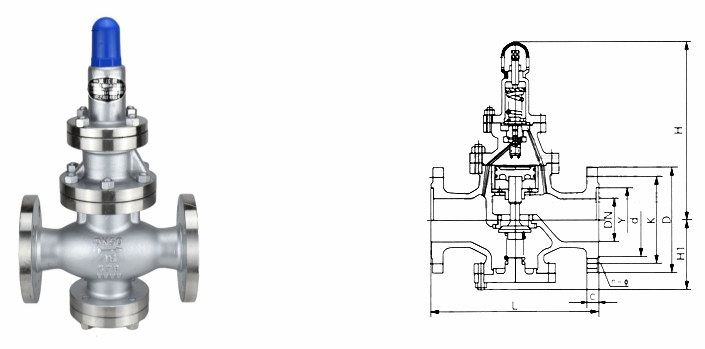 不銹鋼蒸汽減壓閥外形結(jié)構(gòu)圖: