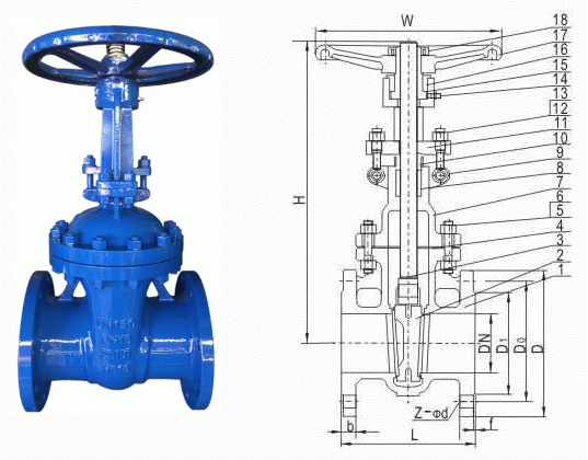 F4德標(biāo)法蘭閘閥外形結(jié)構(gòu)圖: