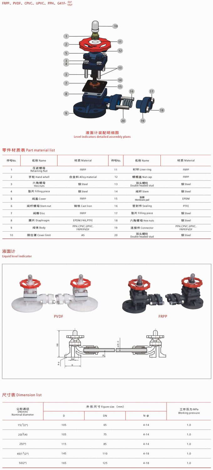 材質(zhì):RPP/PPH/UPVC/CPVC/PVDF
