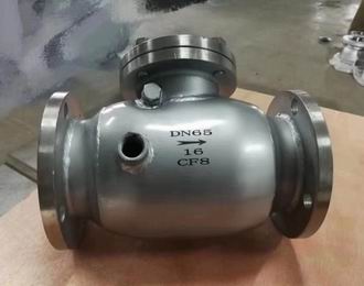 夾套止回閥主要用于石油、化工、冶金、制藥等各類系統(tǒng)中,以輸送常溫下會凝固的高粘度介質(zhì)。保溫系列閥門的夾套焊裝于閥門的兩法蘭之間,閥門的側(cè)面、底部設(shè)置有夾套的連接口。由于增加了夾套,保溫夾套止回閥的連接法蘭尺寸要比同一規(guī)格普通閥門的連接法蘭大一到兩個規(guī)格,但結(jié)構(gòu)長度與同規(guī)格的閥門相同,夾套中可自由地流過蒸汽或其它熱的保溫介質(zhì),確保粘稠介質(zhì)可順暢地流過閥門。
