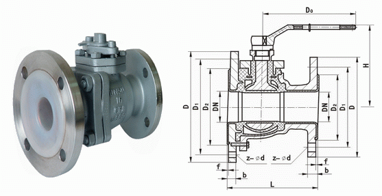不銹鋼襯氟放料球閥連接尺寸: