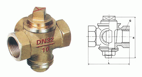 三通全銅內(nèi)螺紋旋塞閥外形結(jié)構(gòu)圖: