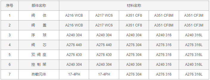 GH4杠桿浮球式蒸汽疏水閥零件材料: