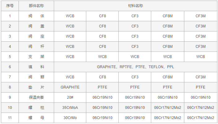 夾套保溫放料閥零件材料: