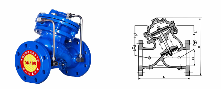多功能水泵控制閥是由閥體、閥蓋、膜片座、膜片、主閥板、緩閉閥板、襯套、閥桿、主閥板座、緩閉閥板座、膜片壓板和控制管系統(tǒng)等零部件組成,具有水力自動控制、啟泵時(shí)緩開、停泵時(shí)先快閉后緩閉的特點(diǎn),并兼具水泵出口處水錘消除器、閘(蝶)閥、止回閥三種產(chǎn)品的功能,擁有自適應(yīng)工況參數(shù)變化、防控水錘危害、保障水安全、降低管道漏損率的閥門。