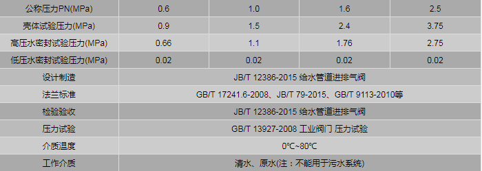 組合式快速進(jìn)排氣閥性能規(guī)范:
