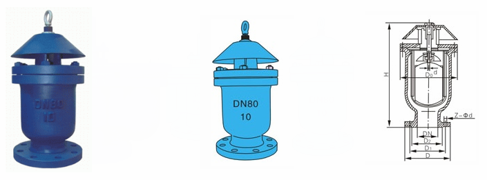 快速排氣閥是由閥體、閥蓋、導(dǎo)向托架、導(dǎo)向套、浮桶、密封蓋、密封墊、防塵罩和排氣嘴等組成,大排氣孔與小排氣孔在同一軸線上,在大排氣孔和浮桶之間設(shè)置了一個(gè)可上下移動(dòng)的用不銹鋼材料制造的密封蓋,它既能密封大排氣孔,又具備了小排氣孔的排氣功能。該閥的大排氣孔可與它本身的公稱通徑同一尺寸,流體通路為閥體內(nèi)腔和導(dǎo)向托架之間的環(huán)狀流路,氣體流動(dòng)性較好,流阻低,排吸氣量大。本產(chǎn)品結(jié)構(gòu)緊湊,重量輕,導(dǎo)向托架上對(duì)稱開設(shè)數(shù)個(gè)通氣窗,其排吸氣過(guò)程不會(huì)產(chǎn)生禍流,提高了排吸氣量。另外,由于密封蓋部件采用不銹鋼材料,上下活動(dòng)自如,不會(huì)產(chǎn)生排吸氣功能失靈現(xiàn)象。