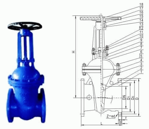 F5德標(biāo)閘閥外形結(jié)構(gòu)圖: