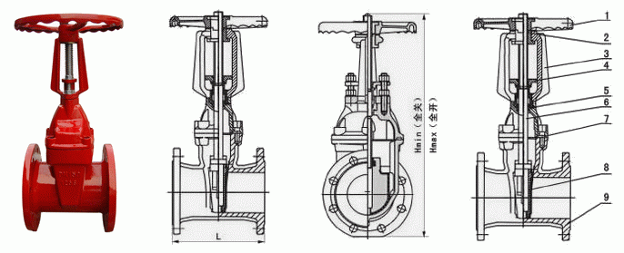 消防專用明桿彈性座封閘閥外形結(jié)構(gòu)圖: