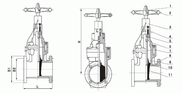 消防專用信號(hào)彈性座封閘閥外形結(jié)構(gòu)圖: