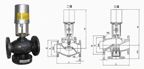 智能型電動二通閥外形結(jié)構(gòu)圖: