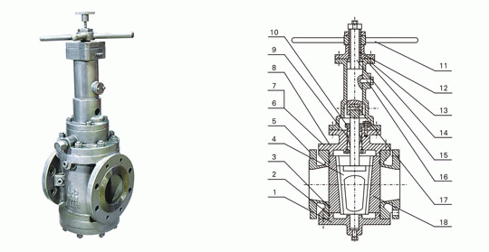軌道式旋塞閥全開的狀態(tài)下,塞子的通道閥體的通道對齊,能保證理想的最低壓力降。轉動手輪塞子朝閥門的方向轉動,同時帶動閥片轉動90度,當繼續(xù)轉動手輪,塞子將會下壓,使閥門向兩側張開,閥片將緊緊的壓在閥座上,使閥門關閉;當手輪向反方向轉動時,首先使塞子向上運動,使閥片于閥座脫離,繼續(xù)轉動手輪,使塞子帶動閥片轉動 90 度,最后塞子的通道于閥體的通道對齊,使閥門處于全開的狀態(tài)。