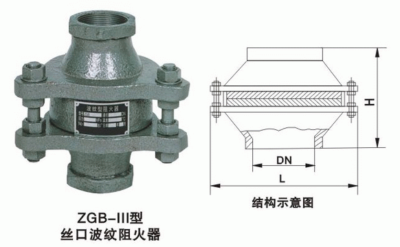 絲口阻火器又名ZGB型絲口阻火器,采用螺紋連接,適用于儲存閃點低于60℃的甲類油品和閃點低于28℃的乙類油品,也適用于儲存物料以氮氣封頂?shù)墓绊敼奚?,礫石阻火器與網(wǎng)型阻火器原理同上,用在管道上。絲口阻火器可與呼吸閥、呼吸人孔配套使用,也可單獨使用。 阻爆性能合格,連續(xù)十三次試驗每次都能阻火。耐火性能合格,耐燒,1小時無回火。