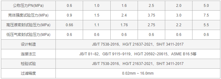 直通式自動(dòng)反沖洗過濾器性能規(guī)范表: