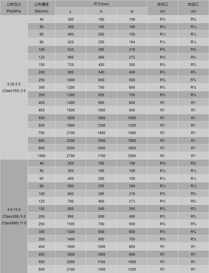 口徑:DN25-600