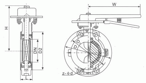 對夾式襯氟蝶閥外形結(jié)構(gòu)圖: