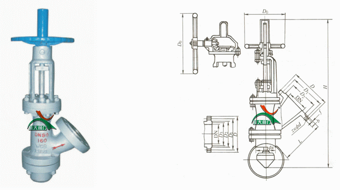 管接放料閥有Y型及角式兩種結(jié)構(gòu)形式,根據(jù)實際工況的需要,放料口的形式設(shè)計有帶管接及平底兩種,閥體內(nèi)腔裝有耐沖刷、耐腐蝕的護(hù)板,在開啟閥門瞬間,可以保護(hù)閥體不被介質(zhì)沖刷、腐蝕,并對其整體進(jìn)行化學(xué)鍍Ni.P處理,使表面硬度達(dá)到HRC60—62,有耐磨、耐腐蝕的。閥座密封面與閥瓣密封面均堆焊有司太立硬質(zhì)合金,密封副采用線密封,保證密封,密封的可靠性,并可防止結(jié)疤。閥門設(shè)有防轉(zhuǎn)機(jī)構(gòu),保證閥桿在開啟和關(guān)閉時只做直線運動,不做回轉(zhuǎn)運動。閥門驅(qū)動方式有:手動、電動、氣動、齒輪傳動。