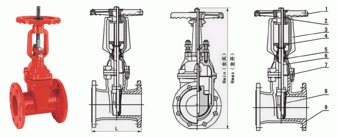 消防明桿軟密封閘閥外形結(jié)構(gòu)圖: