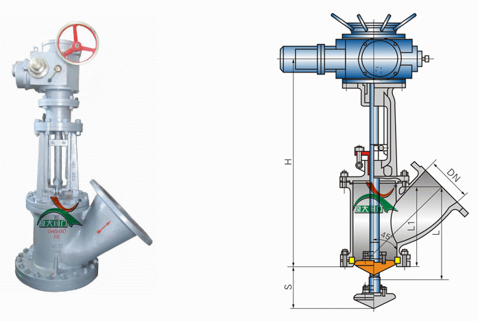 電動平底放料閥外形結(jié)構(gòu)圖: