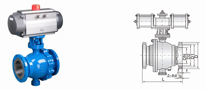 氣動切斷球閥外形結(jié)構(gòu)圖: