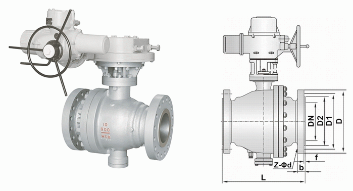 電動(dòng)切斷球閥外形結(jié)構(gòu)圖: