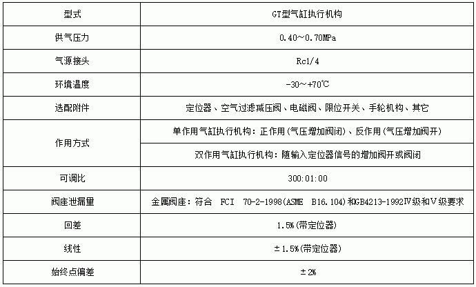 氣動(dòng)V型切斷執(zhí)行器參數(shù):
