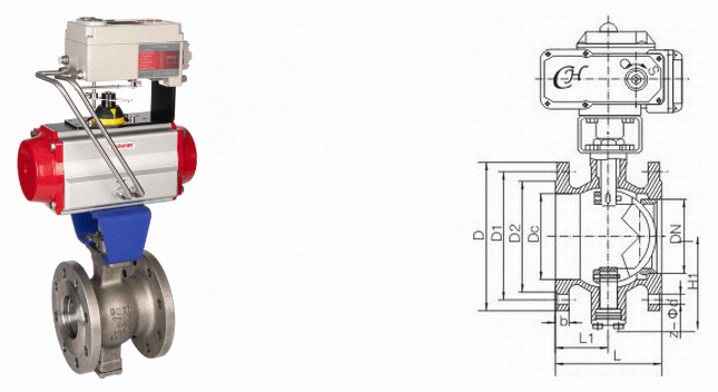 氣動(dòng)V型切斷外形結(jié)構(gòu)圖: