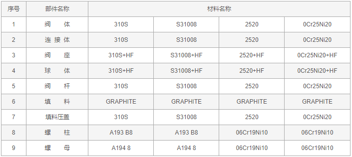 2520、310S不銹鋼球閥,其閥體、連接體、閥桿、球體以及金屬閥座等部件全采用高鉻鎳奧氏體耐熱不銹鋼310S或S31008及0Cr25Ni20等鑄造或鍛造而成,該材料在氧化介質(zhì)中有優(yōu)良的耐腐蝕性,同時(shí)具有良好的高溫力學(xué)性能,因此,310S不銹鋼球閥被大量應(yīng)用于800℃左右化工工業(yè)、航空航天行業(yè)的耐熱控件以及核燃料后處理設(shè)備的耐蝕控制。