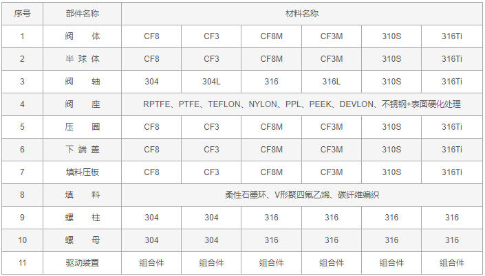 不銹鋼偏心半球閥零件材料: